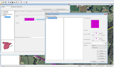 Además al llegar a la simbología nos encontramos con un despliegue de opciones que barre a las del 1.1.2. Ahora ya se puede dibujar elementos que antes era harto complejo, como la línea habitual en cartografía para el ferrocarril o para una autovía (la típica línea doble roja o azul con una blanca o amarilla en el medio). No sólo eso: ahora se pueden almacenar juegos de símbolos y de iconos, que se pueden crear en el propio gvSIG. Sólo echo de menos que no aporte ya un paquete de simbologías por defecto, pero por lo demás está más que correcto.