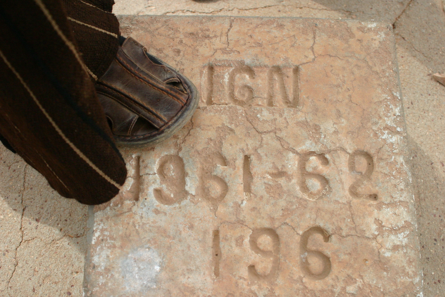 Esta piedra no era otra cosa que un vértice geodésico, ¡en medio de la nada! No tenemos la seguridad de si era español o francés, dado que ambos estados tienen su IGN, pero según he leido en la prensa de la época, parece que es español. Aunque está situado en lo que hoy es Argelia, en los años 60 las fronteras estaban ligeramente desplazadas sobre las actuales.